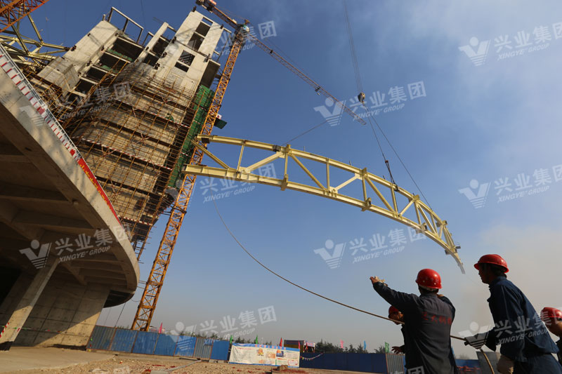 2014年11月,興業(yè)酒店大堂桁架吊裝(鄭培波 攝)