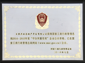 ·2016年7月,興業(yè)房產(chǎn)獲得國(guó)家工商行政管理總局2014-2015年度“守合同重信用”企業(yè)公示資格。