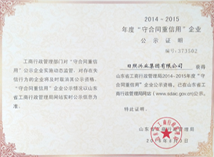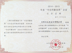 ·2016年8月,日照興業(yè)進(jìn)出口有限公司獲得山東省工商行政管理局2014--2015年度“守合同重信用”企業(yè)