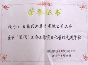 ·2016年4月,興業(yè)集團(tuán)被經(jīng)濟(jì)技術(shù)開(kāi)發(fā)區(qū)授予“全區(qū)10+X工會(huì)工作項(xiàng)目化管理先進(jìn)單位”