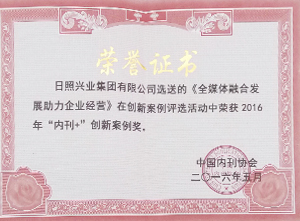 ·2016年5月,興業(yè)集團(tuán)選送的《全媒體融合發(fā)展助力企業(yè)經(jīng)營(yíng)》在創(chuàng)新案例評(píng)選活動(dòng)中榮獲2016年“內(nèi)刊+”創(chuàng)新案例獎(jiǎng)