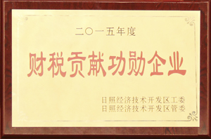 ·2016年1月,2015年度日照經(jīng)濟(jì)技術(shù)開(kāi)發(fā)區(qū)財(cái)稅貢獻(xiàn)功勛企業(yè)