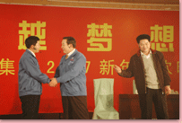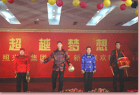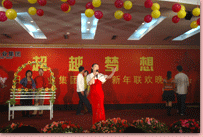 瑞犬凱歌辭舊歲,花豬起舞賀新年。2月6日晚,凱萊大酒店會(huì)展中心 內(nèi)歌聲悠揚(yáng)、掌聲陣陣,“2007年日照興業(yè)集團(tuán)迎春聯(lián)歡文藝晚會(huì)”正在這里舉行。集團(tuán)領(lǐng)導(dǎo)丁杰、王建國(guó)、韓金軍、趙文強(qiáng)、申作華、李麗萱、李春賢以及集團(tuán)機(jī)關(guān)、各分公司的標(biāo)兵、先進(jìn)工作者、職工代表近400人一起興致勃勃地觀(guān)看了演出。全國(guó)政協(xié)委員、民革中央畫(huà)院院長(zhǎng)、國(guó)畫(huà)大師宋雨桂應(yīng)邀出席了晚會(huì)。市內(nèi)各大銀行、日照日?qǐng)?bào)、日照電視臺(tái)等單位的領(lǐng)導(dǎo)、記者、工作人員也觀(guān)看演出,歡聚一堂,共慶新年。